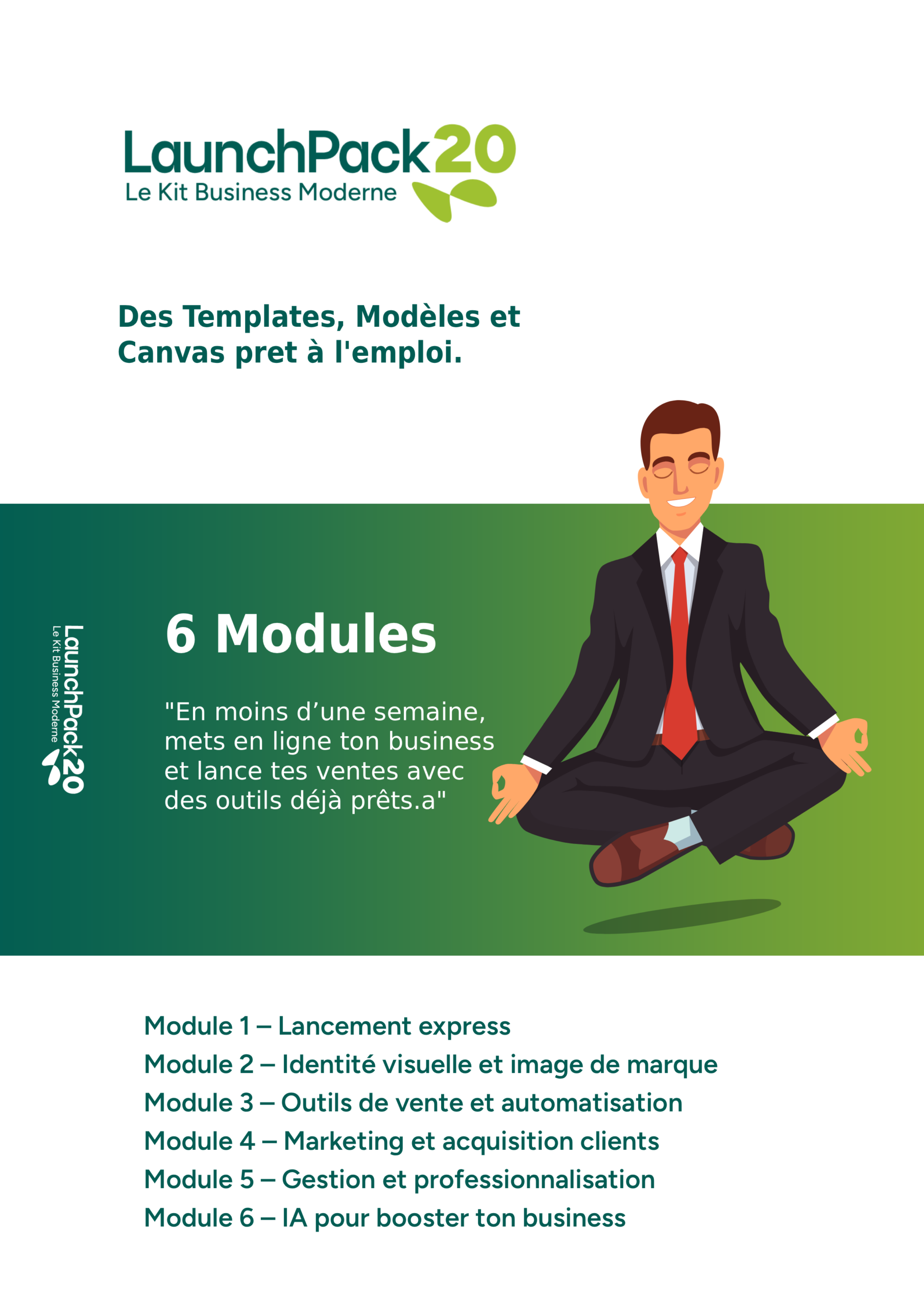 Le Kit Business Moderne « LaunchPack 20 » : Tous les outils, templates et stratégies déjà prêts pour encaisser vos premières ventes sans perdre de temps.