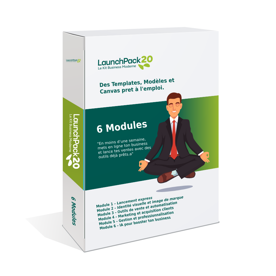 Le Kit Business Moderne « LaunchPack 20 » : Tous les outils, templates et stratégies déjà prêts pour encaisser vos premières ventes sans perdre de temps.